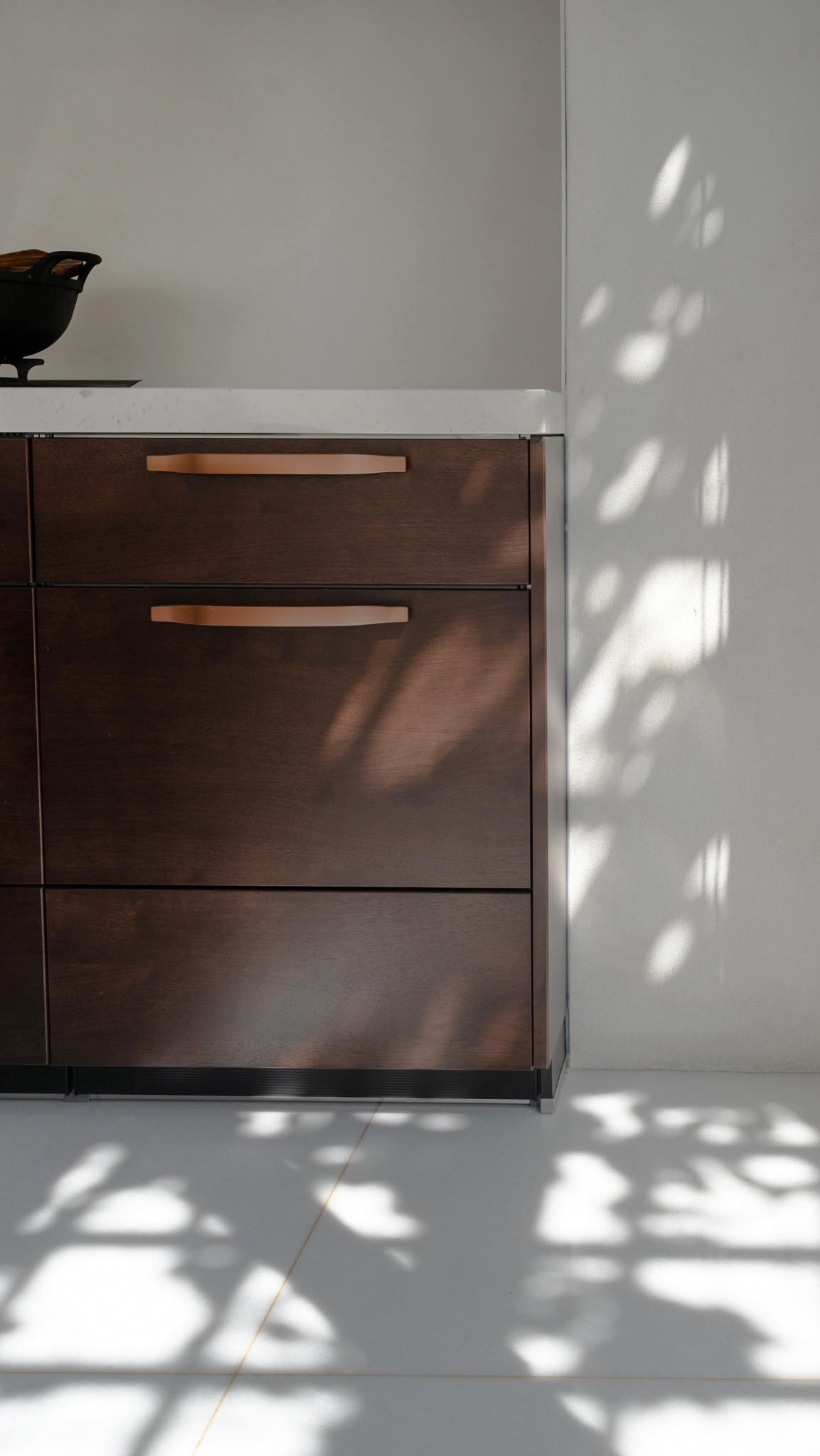 自然光映襯實木皮門片,展現細膩光影層次。