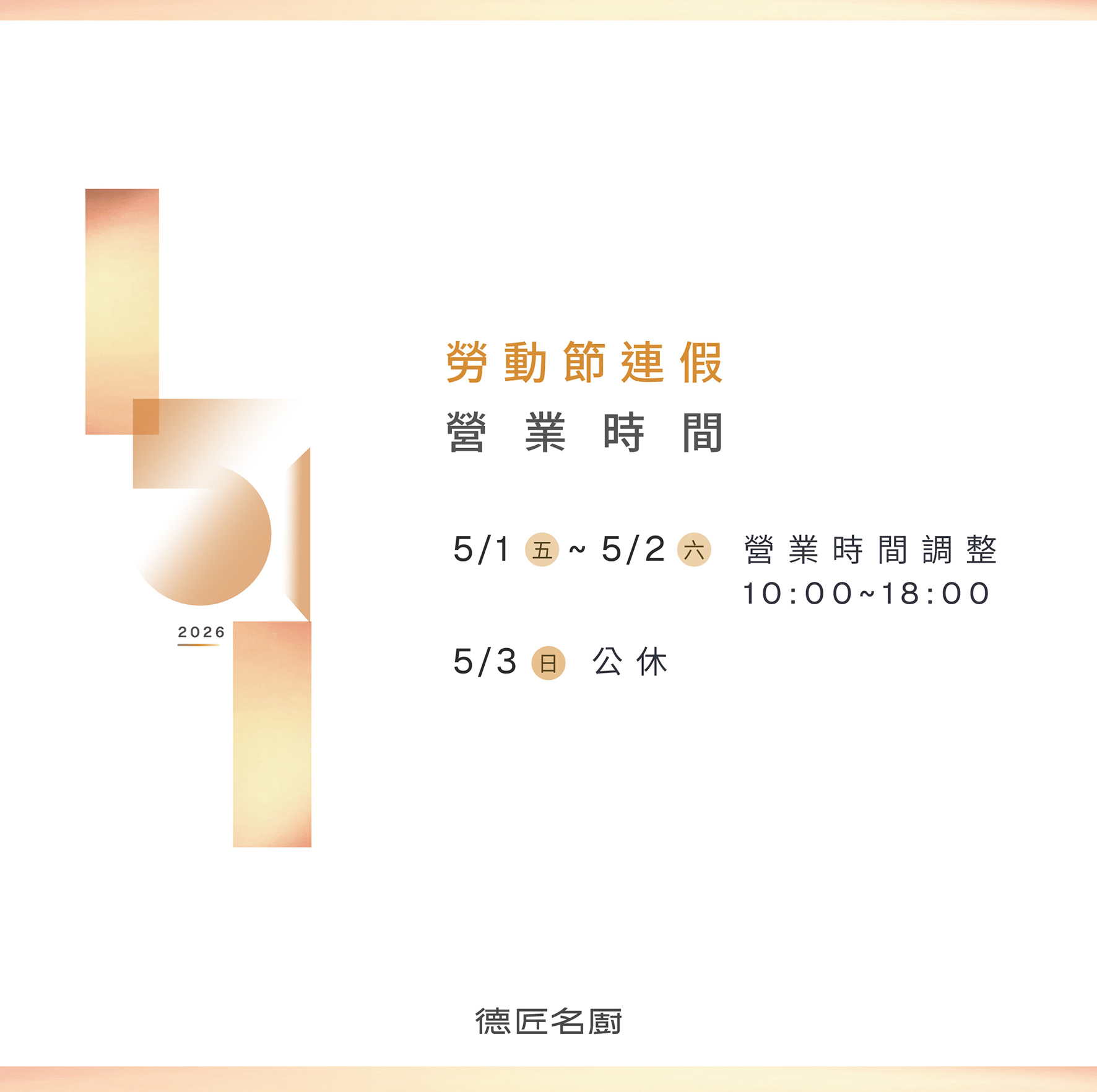 勞動節連續假期營業時間